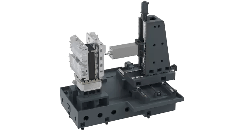 • Станок с зажимами на двух рабочих позициях для завершения обработки шести поверхностей.